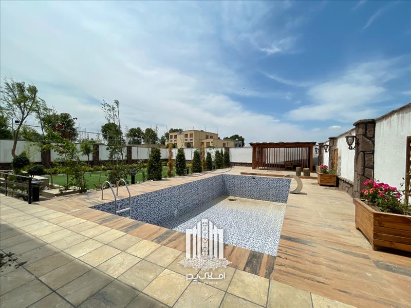 استخر رو باز چهار فصل مجهز به تصفیه خانه در محوطه باغ ویلا