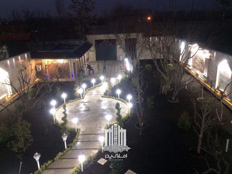محوطه سازی و نور پردازی این باغ ویلای رویایی فضایی دلنشین و آرامش بخشی را به ارمغان آورده است .