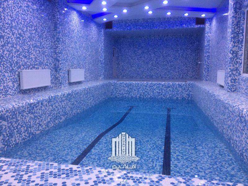 در طبقه اول این باغ ویلا دیدنی یک استخر سر پوشیده با تمامی تاسیسات