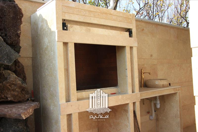 آبنما سنگی زیبا و باربیکیو در مجاورت ویلا