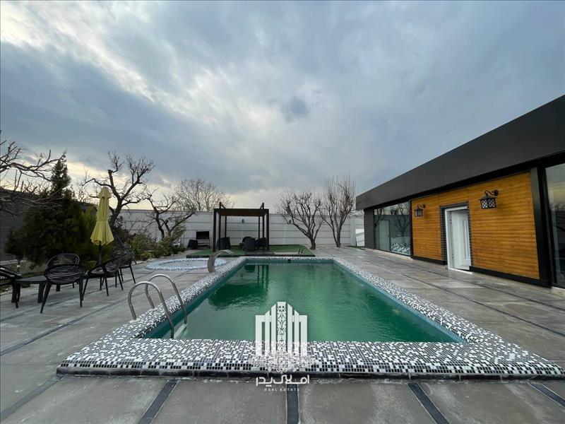 باغ ویلا فوق العاده زیبا و لوکس به متراژ 1000متر مربع در منطقه ویلایی نشین و خوش آب و هوای شهریار همراه 140متر ویلا مدرن 30 متر سرایداری به فروش می رسد. همراه با کلیه امکانات رفاهی از جمله : استخر بزرگ روباز با تاسیسات کامل و محوطه سرسبز و بسیار دیدنی ، آلاچیق ، باربیکیو ، آبنما و همچنین فضاسازی و محوطه سازی فوق العاده زیبا از ویژگی های این باغ ویلا در شهریار می باشد. مدارک مالکیت این باغ ویلا در شهریار به صورت تک برگ عرصه و اعیان و دارای انشعابات آب ، برق و گاز می باشد.