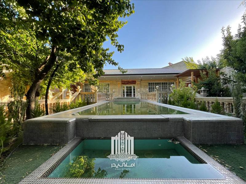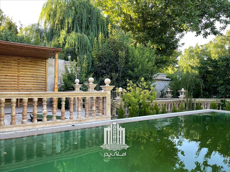 * استخر رو باز چهار فصل مجهز به تصفیه خانه هوشمند در محوطه باغ ویلا