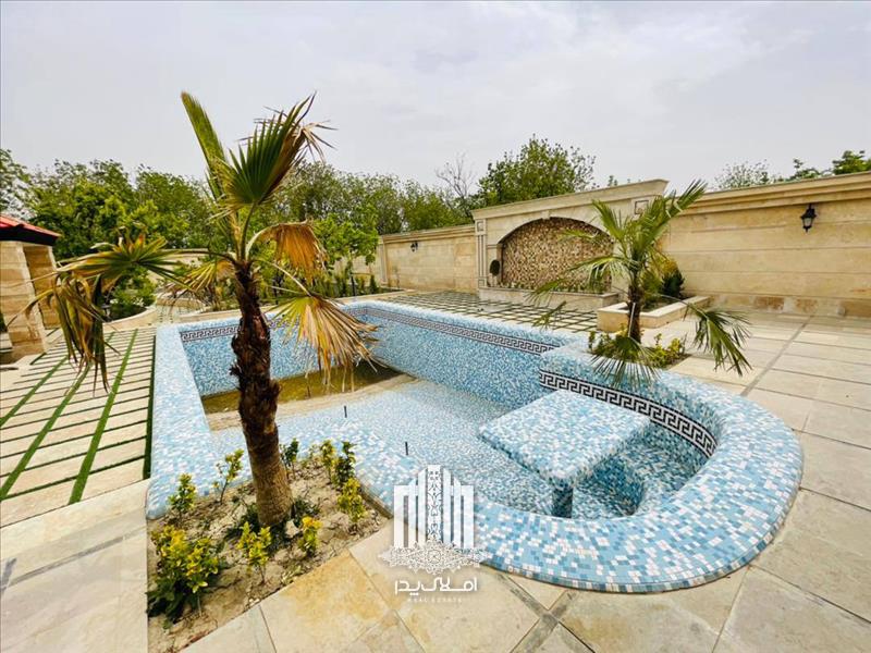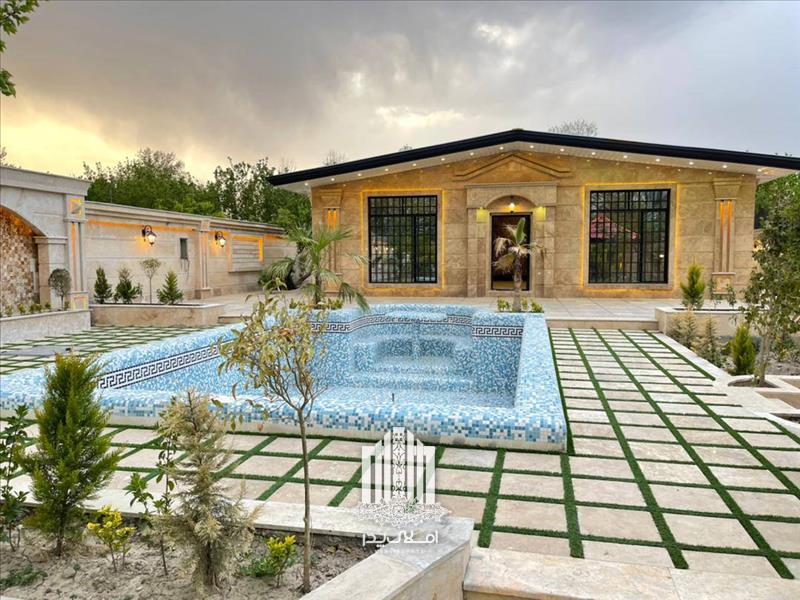 باغ ویلا بسیار زیبا و دیدنی طراحی شده به سبک کلاسیک در موقعیت عالی از منطقه ویلایی لم آباد با دسترسی بسیار خوب به مساحت 1000 متر مربع و همچنین دارای 120 متر ویلا دو خوابه ، آماده فروش می باشد. این باغ ویلا در ملارد دارای استخر بزرگ و زیبا با تاسیسات کامل و همچنین دارای میز بار می باشد. محوطه سازی دیدنی و دلنشینی در فضای باغ انجام شده و تمام محوطه سنگ فرش و نورپردازی شده است.
