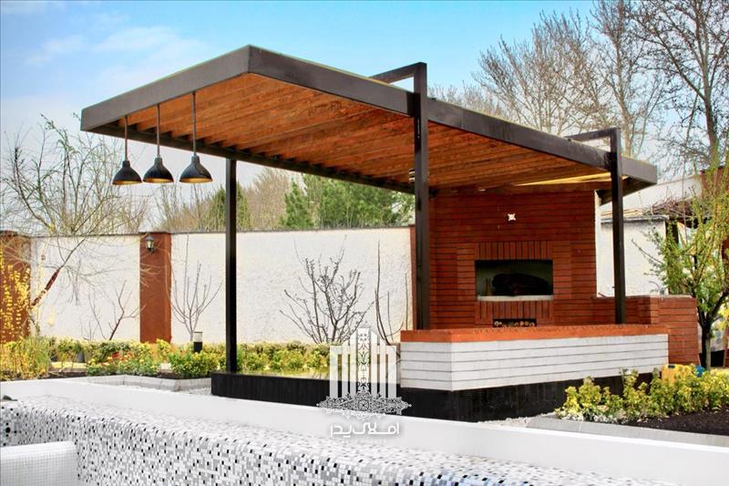 - آلاچیق مدرن با باربیکیو در مجاورت استخر