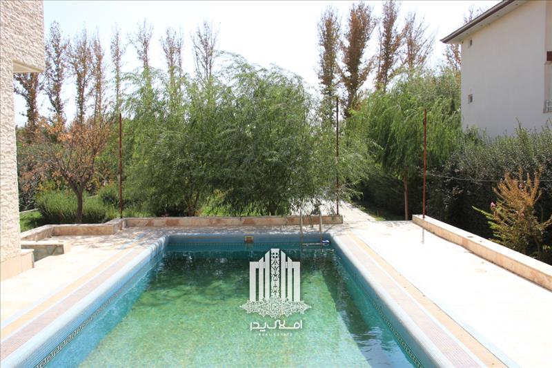 استخر بزرگ در محوطه باغ ویلا مجهز به تصفیه خانه و گرمکن