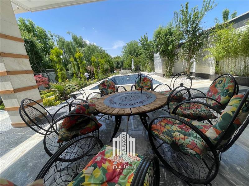باغ ویلا فوق العاده زیبا و دیدنی در منطقه ویلایی نشین منطقه شهریار با متراژ 1100 متر به همراه 600 متر ویلا چهار خوابه به فروش می رسد. این باغ ویلا شهریار علاوه بر بنای اصلی دارای و 80 متر سوئیت سرایداری و نگهبانی به صورت مجزا می باشد. از امکانات این باغ ویلا بسیار شیک می توان به استخر و جکوزی روباز با تاسیسات کامل ، محوطه سازی سرسبز و نورپردازی در کل محوطه باغ و همچنین به انشعابات کامل و قانونی آن اشاره کرد.