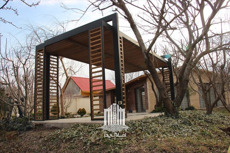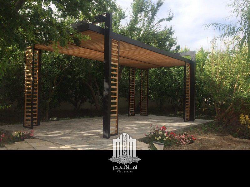 آلاچیق تمام چوب مشرف به نمای کلی باغ