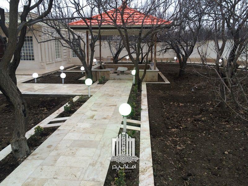 با محوطه سازی به صورت سنگ فرش و بسیار دلنشین و آلاچیق و باربیکیو و استخر بزرگ با انشعابات کامل (آب،برق،گاز)