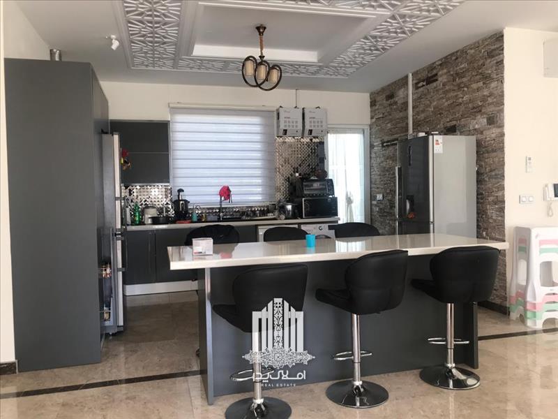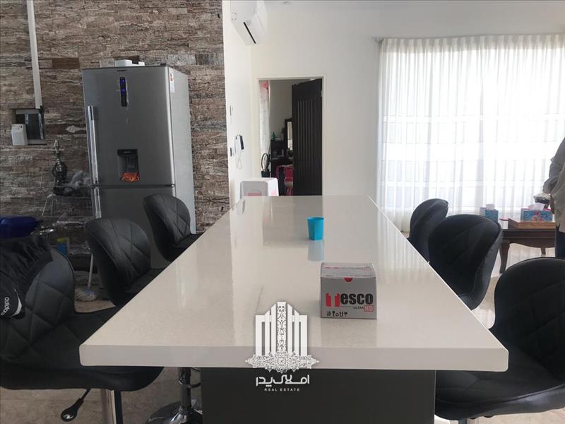 * آشپزخانه بزرگ با کابینت ها های گلاس مجهز به (گاز رو میزی - یخچال و فریزر - فر تو کار - ماشین لباسشویی)
