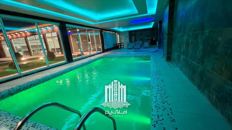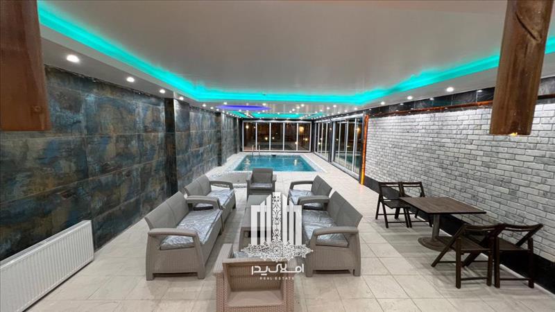 - دارای دو استخر یکی به صورت سر پوشیده و دیگری روباز در محوطه باغ قرار گرفته شده است که مجهز به تصفیه خانه و گرمکن می باشد