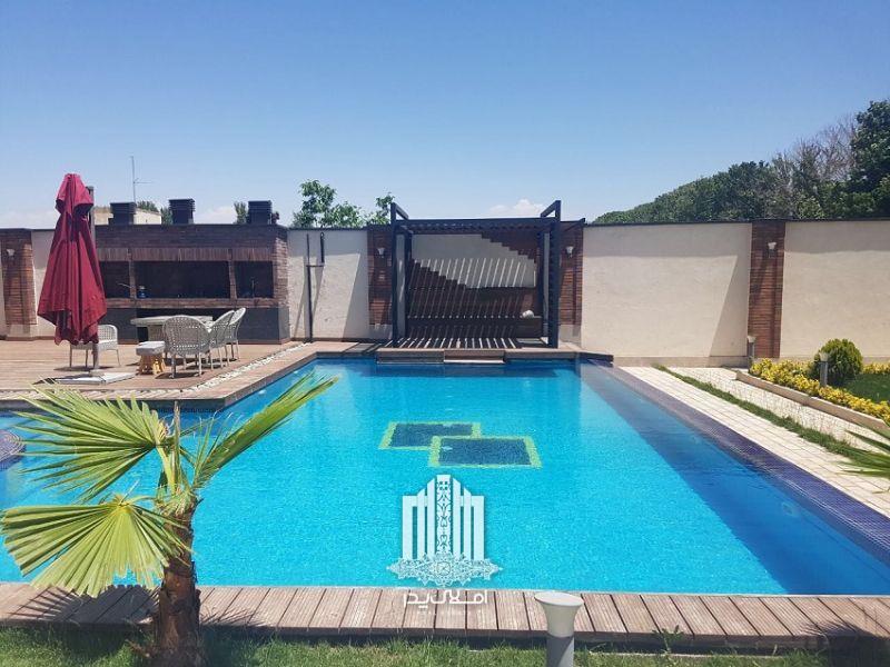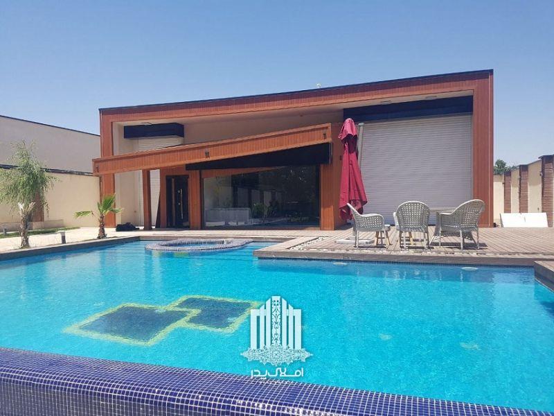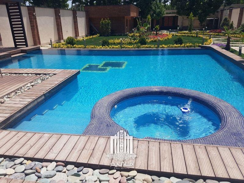 دارای استخری زیبا مجهز به تمامی تاسیسات در محوطه باغ ویلا
