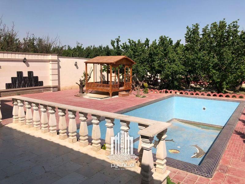دارای استخری زیبا و مجهز به تمامی تاسیسات در محوطه باغ