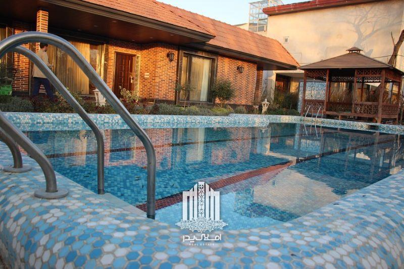 دارای استخری زیبا مجهز به تمامی تاسیسات در محوطه باغ