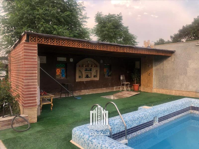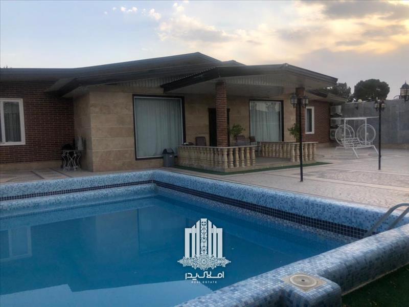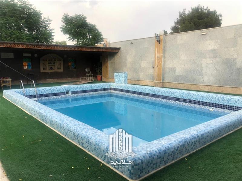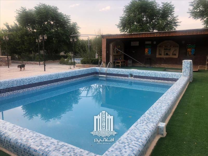 استخر رو باز چهار فصل مجهز به تصفیه خانه و گرمکن در محوطه باغ