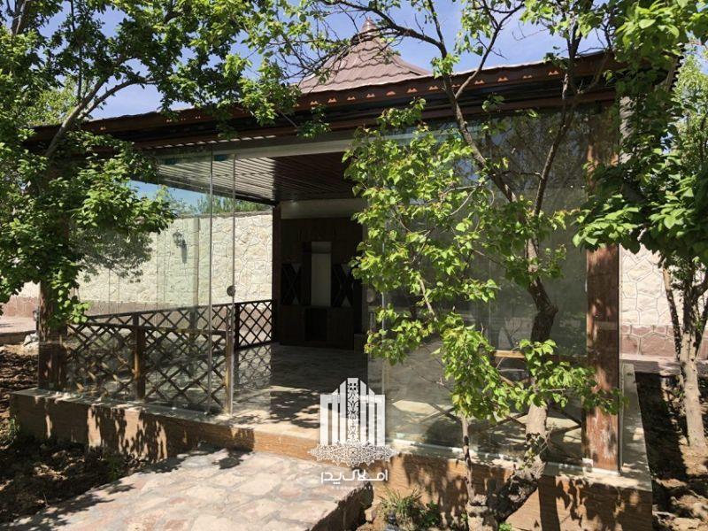 دارای 32 متر آلاچیق تمام شیشه در محوطه باغ به همراه شومینه هیزمی