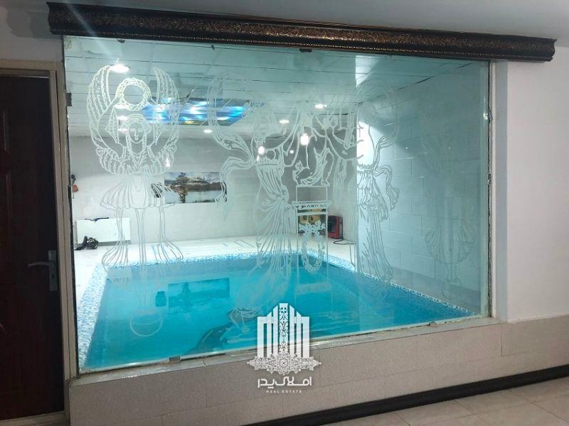 دارای دو استخر به صورت سرپوشیده داخل ساختمان و روباز در محوطه باغ