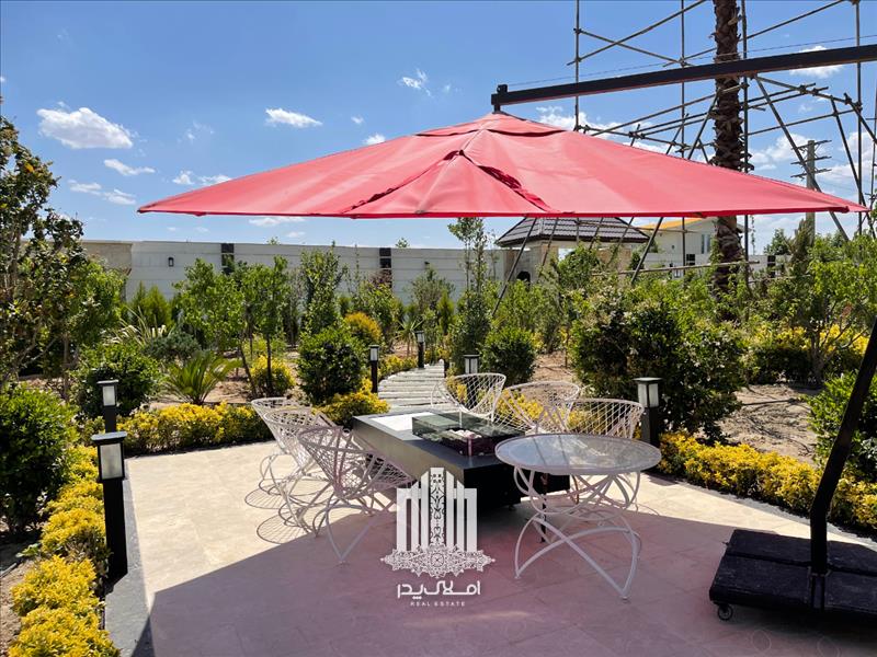 * آلاچیق بزرگ چهار فصل و به همراه باربیکیو و با تجهیزات کامل رفاهی در محوطه باغ