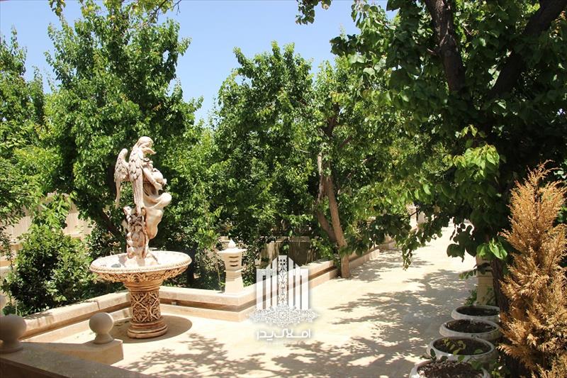 داری آلاچیق و باربیکیو و آبنمای زیبا در محوطه باغ