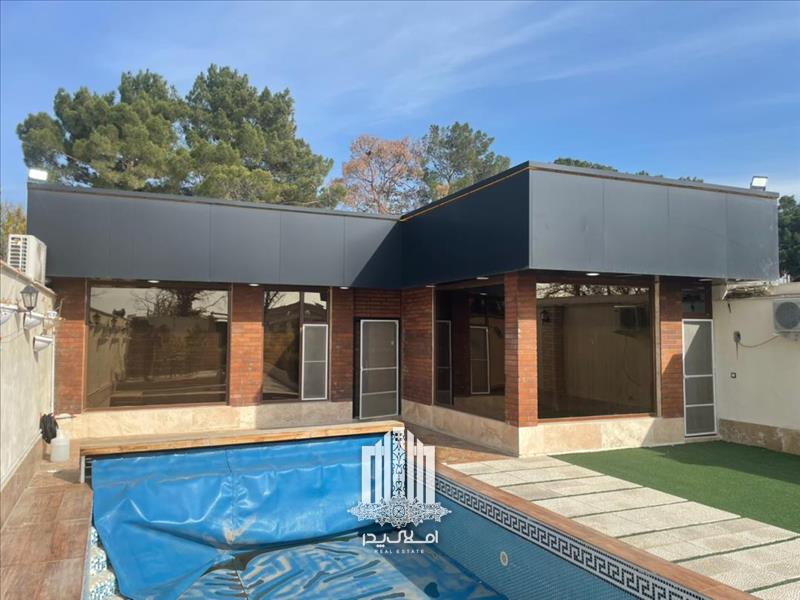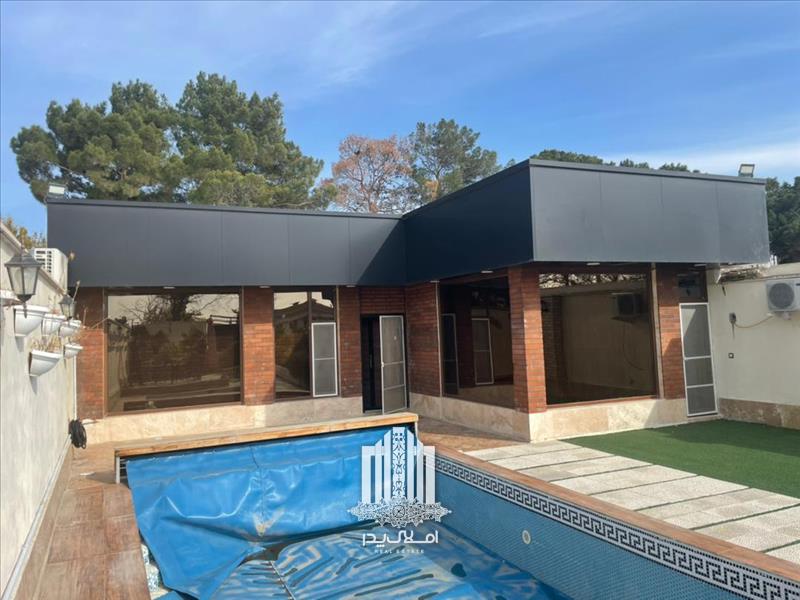 استخر رو باز چهار فصل مجهز به تصفیه خانه و گرمکن در محوطه باغ ویلا