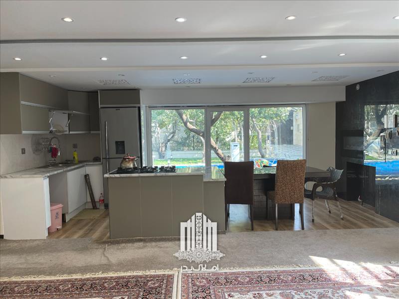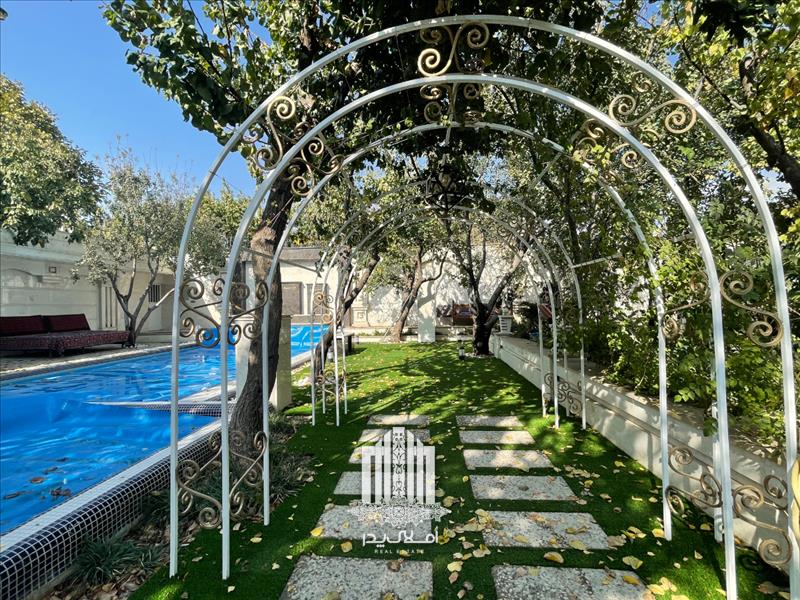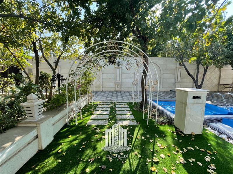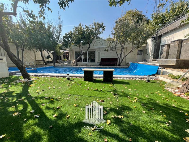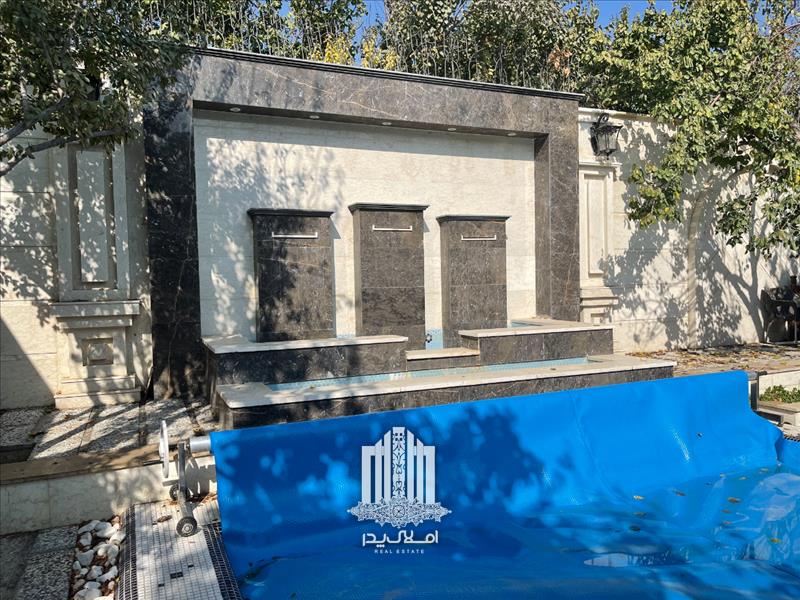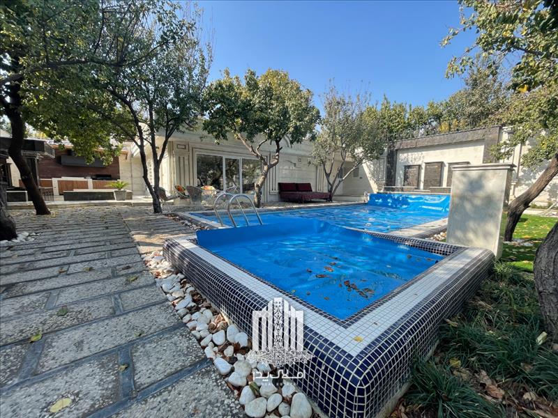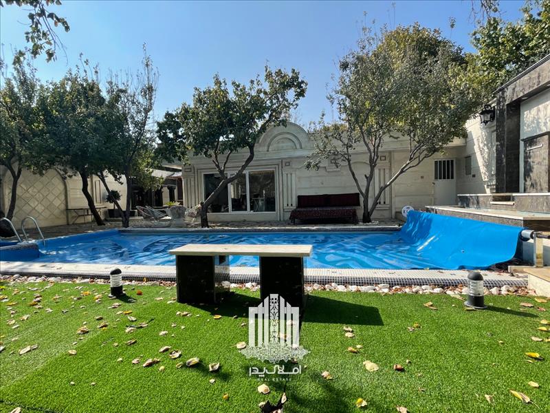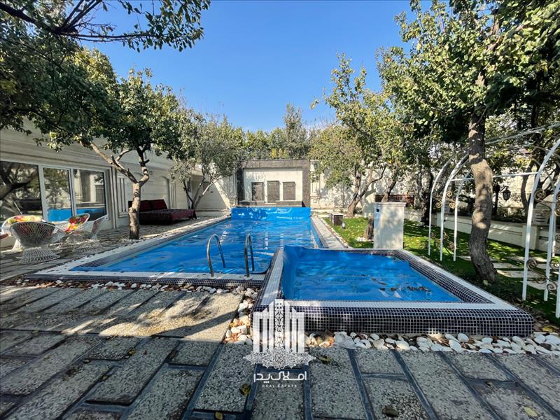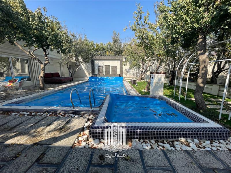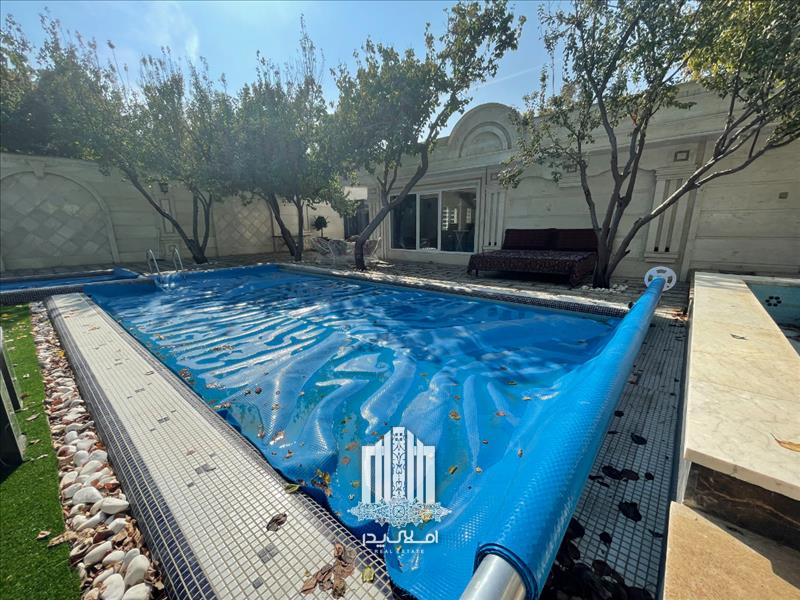 * استخر رو باز چهار فصل مجهز به تصفیه خانه و گرمکن در محوطه باغ ویلا