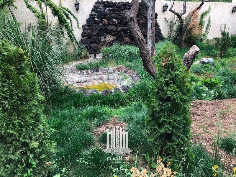محوطه سازی باغ ویلا با استفاده از آبنما و آلاچیق و برکه
