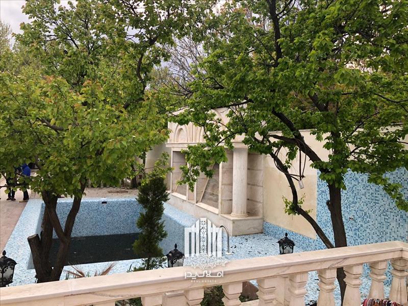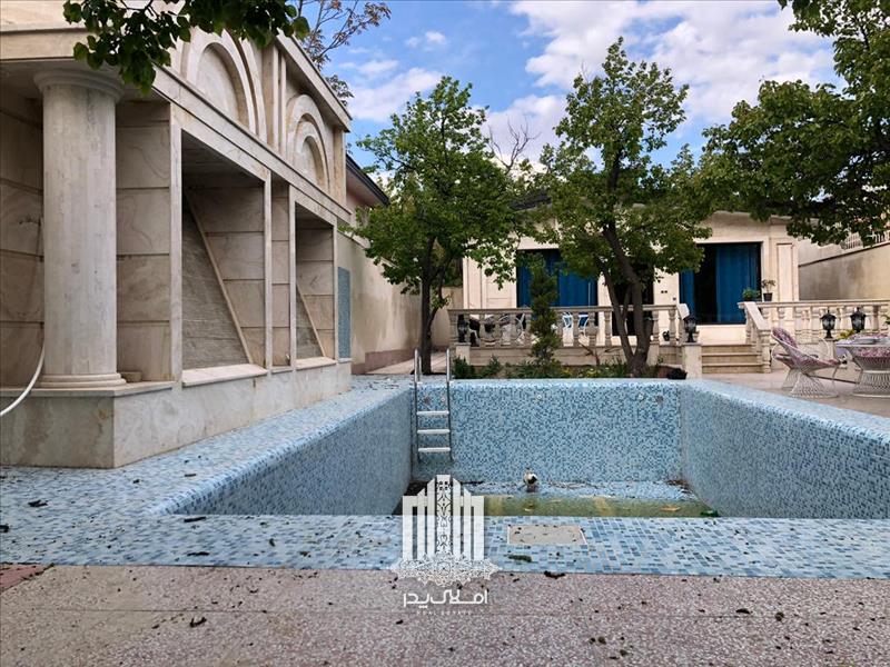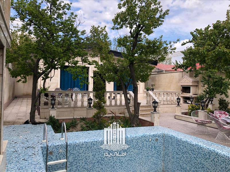 استخر بزرگ با تصفیه خانه و گرم کن در محوطه این باغ ویلا