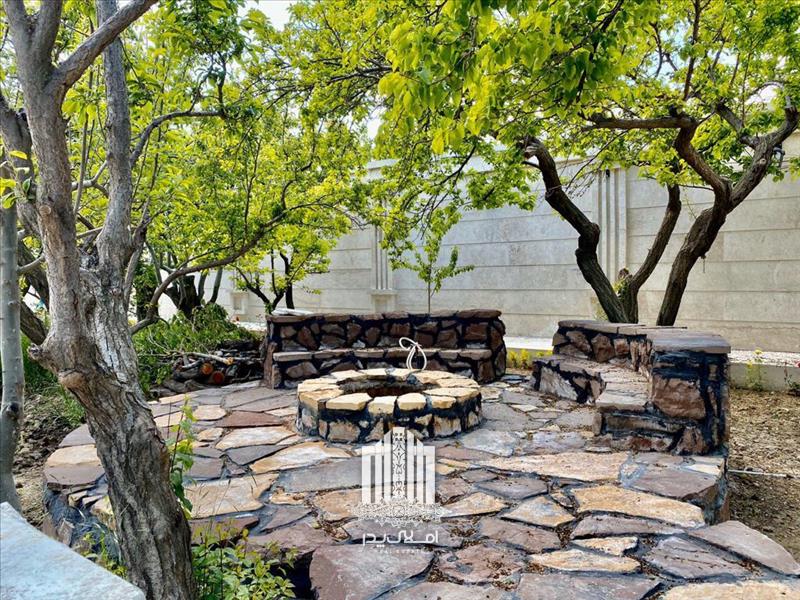 *نشیمن گاه زیبا و شومینه فضای باز در محوطه باغ ویلا